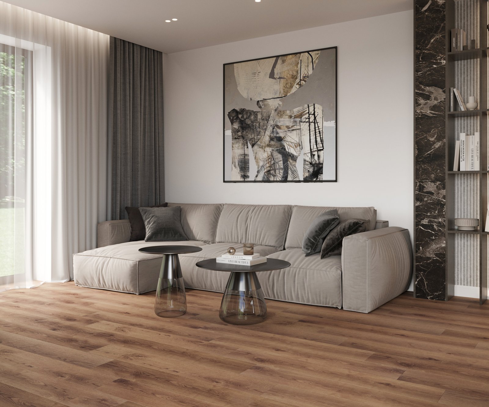 Kokybiškos SPC vinilinės grindys su integruotu paklotu (34 klasė, 0,55 mm-dėvinamasis sluoksnis). Grindys turi sertifikuotą I4F CLICK (surakinamos) sistemą, o tai garantuoja paprastą ir tvirtą sumontavimą. Lentos yra 5 mm storio ir sudarytos iš penkių sluoksnių, tarp kurių yra sluoksnis, kuris apsaugo nuo įbrėžimų, saulės spindulių, skysčių išsiliejimų. Grindys skirtos ne tik gyvenamoms patalpoms, bet puikiai tarnauja ir mokykloms, darželiams, biurui, parduotuvėms.